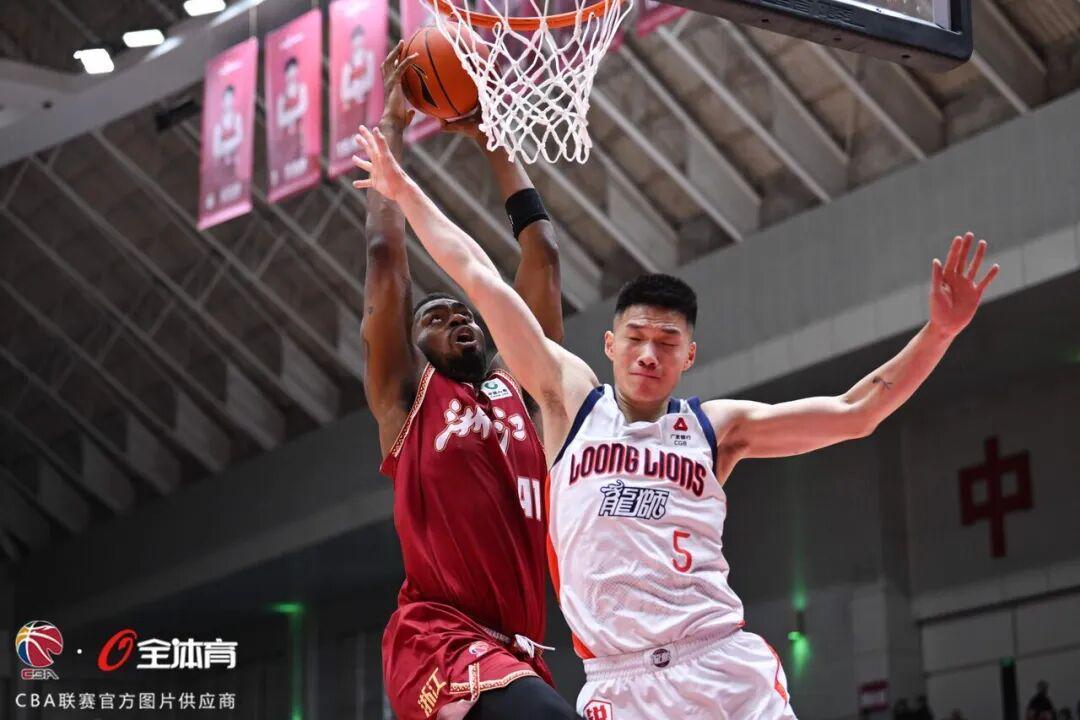 次节开始,兰道夫后仰跳投命中,随后罚球再得两分,约翰逊快下完成双手暴扣,随后补篮得手,陆文博侧翼三分果断出手,吴前底角三分跳投命中,约翰逊带球上篮得分,约克顶着防守打成2+1,王奕霖两罚全中。半场结束,浙江44-36龙狮。