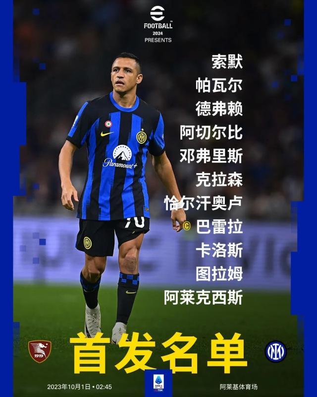 意甲第7轮,国际米兰做客萨莱诺的阿莱基体育场挑战萨勒尼塔纳,依靠替补出场的劳塔罗下半场的大四喜,国际米兰在客场4比0击败对手!