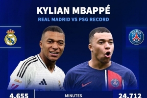 体育资讯7月9日讯 德国转会市场统计了姆巴佩效力皇马和巴黎期间的数据,并做出对比。